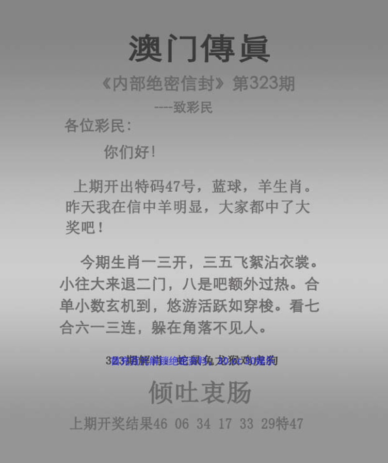 今期生肖二三开,三八送礼中四千。蜿蜓曲折毒气涌,是双又逢旺木春。却有天间两阴会,春天里头开红花。特码爆冷玄机中,心猿意马何中叹。