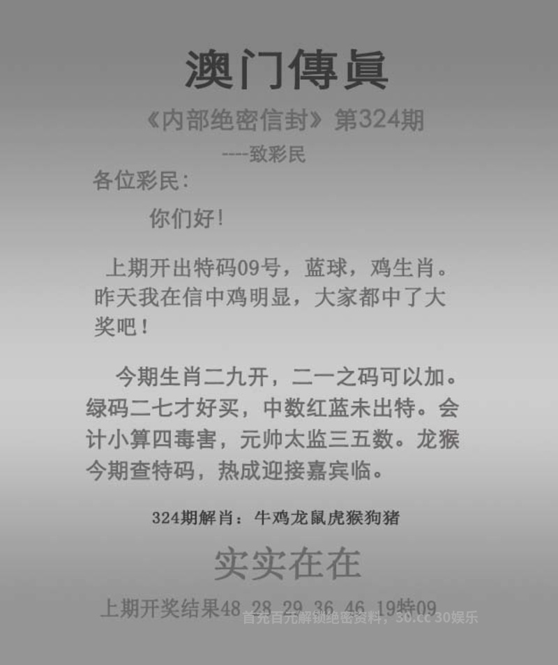 解:今期生肖三十开,二门得九财源进。三十解30鼠,二门解1头,九解鸡。奸臣献计斩忠良,匿玉玺孫堅背約。奸臣忠良解牛马狗猪。出三人四迎二一,人生识字忧患始。二一解鸡。羊马猪虎猴有特,一一相连当为贵。明肖羊马猪虎猴。